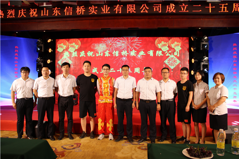 歲月如歌,風(fēng)霜如畫(huà),二十五年彈指一揮間,山東信橋?qū)崢I(yè)有限公司(以下簡(jiǎn)稱山東信橋)迎來(lái)了二十五周年的生日。二十五年來(lái),信橋人在激烈的市場(chǎng)競(jìng)爭(zhēng)中奮力拼搏、砥礪前行,接受了市場(chǎng)風(fēng)風(fēng)雨雨的洗禮,取得了累累碩果。為了慶祝這一特殊的日子,2019年8月8日,以“感恩同行,共贏未來(lái)”為主題的山東信橋二十五周年慶典活動(dòng)在帝苑酒店舉行。