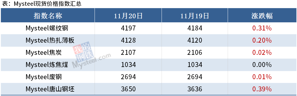 ◎ 11月20日,本網監(jiān)測的唐山地區(qū)11家145mm帶鋼廠13條軋線,開工率23.08%,周環(huán)比減15.38%,月環(huán)比降61.54%。詳情>>