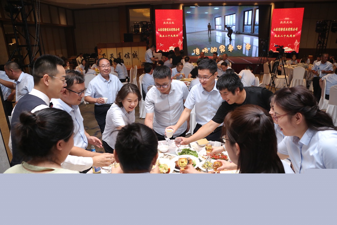 歲月如歌,風(fēng)霜如畫,二十九年彈指一揮間,山東信橋?qū)崢I(yè)有限公司(以下簡(jiǎn)稱山東信橋)迎來了二十九周歲的生日。二十九年來,信橋人在激烈的市場(chǎng)競(jìng)爭(zhēng)中奮力拼搏、砥礪前行,接受了市場(chǎng)風(fēng)風(fēng)雨雨的洗禮,取得了累累碩果。為了慶祝這一特殊的日子,2023年8月8日,以“激流勇進(jìn),安定團(tuán)結(jié)謀發(fā)展 披荊斬棘,開拓創(chuàng)新向未來”為主題的山東信橋二十九周年慶典活動(dòng)在寶盛大酒店舉行。