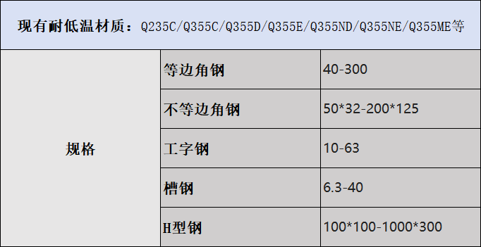信橋國(guó)標(biāo)庫(kù)存構(gòu)成如下:國(guó)標(biāo)型材應(yīng)有盡有,耐低溫、低合金、各種規(guī)格齊全。