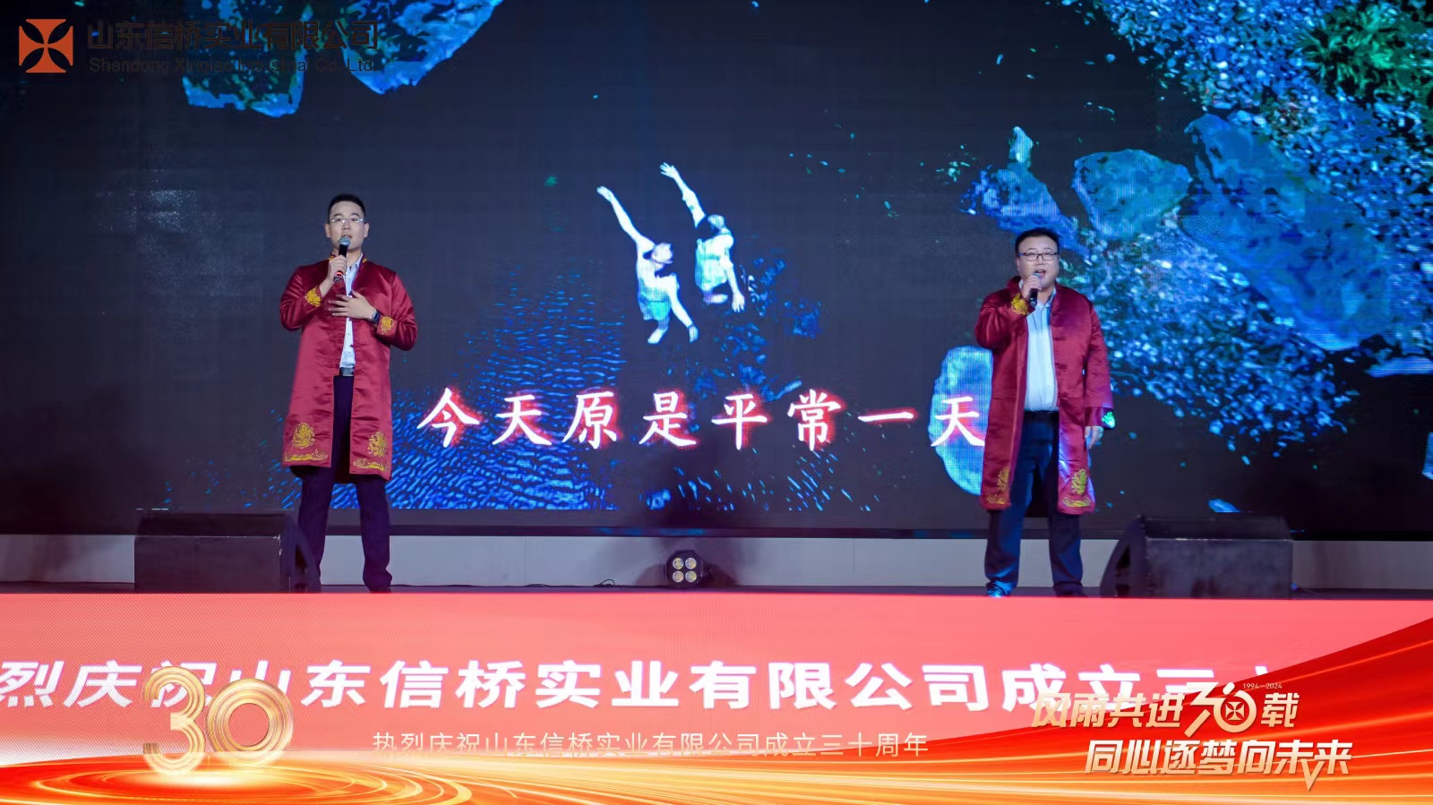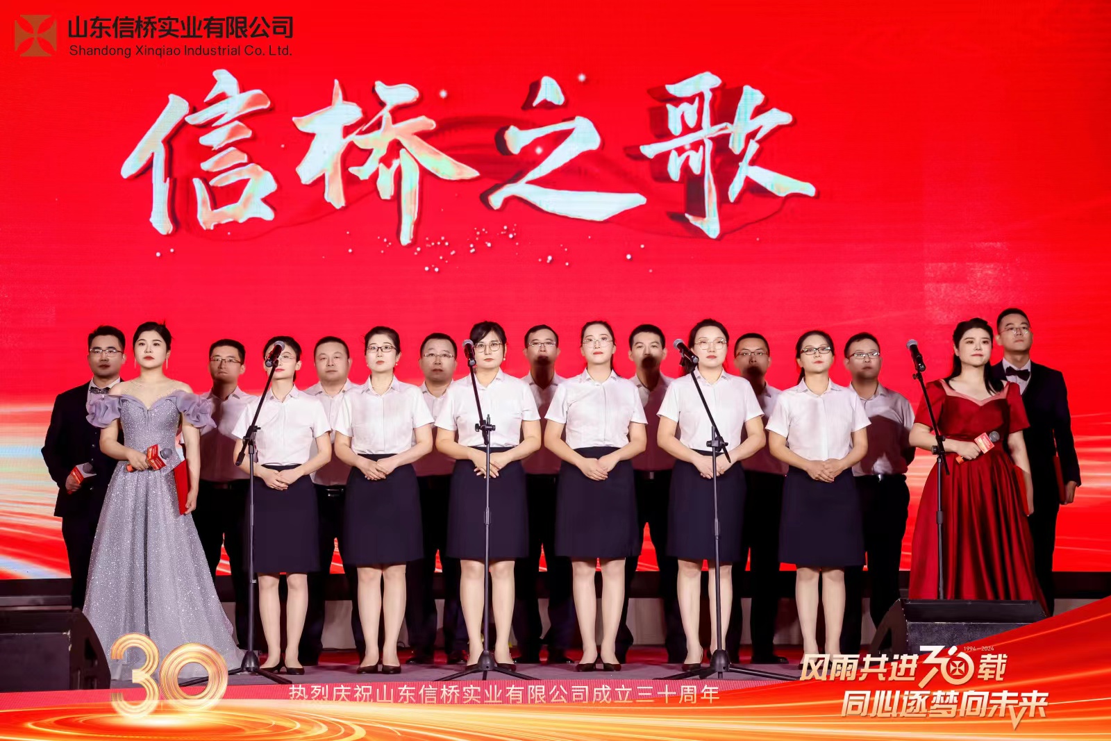 四位主持帶來詩朗誦《30而立,行穩(wěn)致遠》,隨后,全體信橋員工帶來大合唱《信橋之歌》。