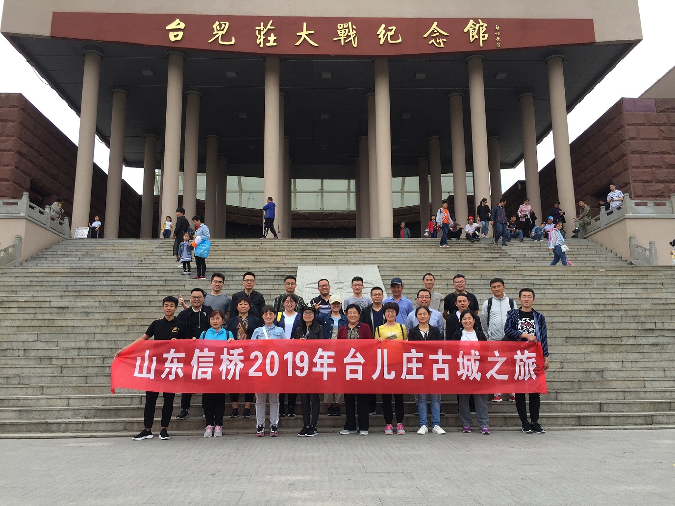 2019.5.11早大家在指定地點(diǎn)集合乘車赴棗莊,抵達(dá)后參觀【臺(tái)兒莊大戰(zhàn)紀(jì)念館】,在紀(jì)念館前拍照留念后沿38級臺(tái)階拾級而上,依次步入展覽館的3個(gè)展廳和全景畫館,600多件珍貴文物史料和集聲、光、塑、形及氣勢恢弘的畫面于一體的巨幅全景畫,再現(xiàn)那一段飽含光與淚的歷史,引人深思。