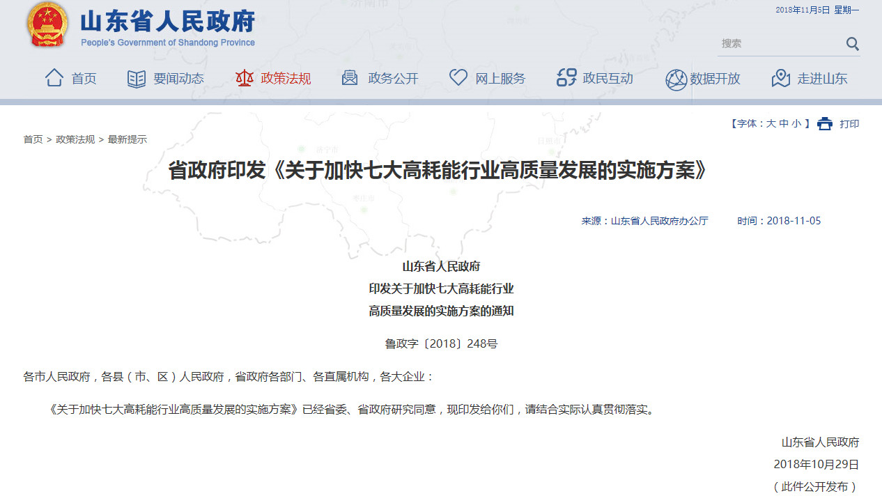 Based on the industrial base and advantages of Shandong Province, the notice requires the promotion of high-quality development of seven industries with high energy consumption, including steel.
