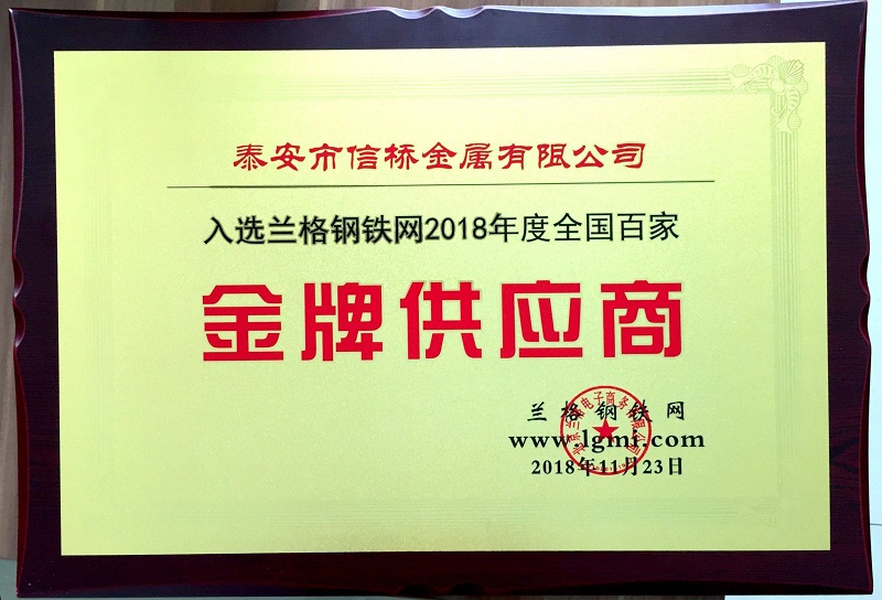 會(huì)議過后后,是眾多鋼企,鋼貿(mào)商期待的頒獎(jiǎng)環(huán)節(jié),泰安市信橋金屬有限公司再獲殊榮,榮獲蘭格網(wǎng)“2018年度全國百家金牌供應(yīng)商稱號(hào)”。頒獎(jiǎng)現(xiàn)場熱鬧非凡,參會(huì)人員倍感榮幸。
